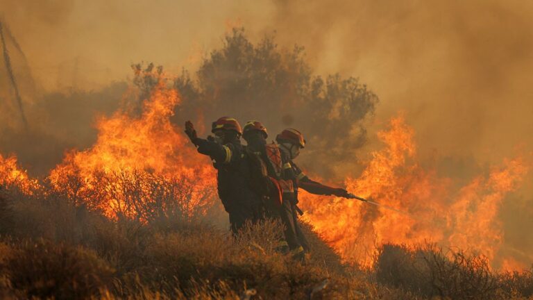 Video. Girit adasındaki itfaiyeciler büyük orman ateşiyle savaşıyor